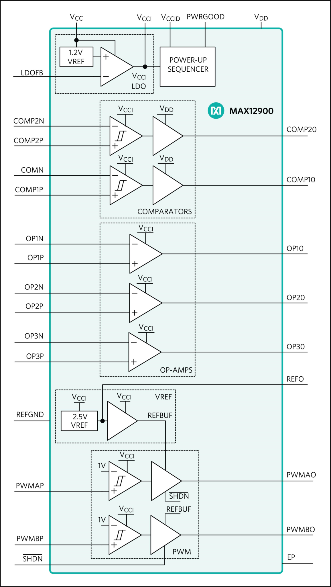 The MAX12900 increases system accuracy with 10 ppm/°C voltage reference for up to 3.5x lower drift compared to traditional solutions. The small footprint (5mm x 5mm package size) of the MAX12900 integrates 10 optimized building blocks that results in significant space savings of 20%-50% vs. traditional 4-20mA sensor transmitter implementations. The addition of an integrated high voltage LDO and power sequencing capability simplifies the power up of the 4-20mA sensor transmitter. Its reduced current consumption for low power requires just 250uA of current maximum, enabling up to 50% power savings compared to traditional solutions. The new MAX12900 solution reduces implementation complexity, generating system cost savings by converting pulse width modulation data from a microcontroller into current over a 4-20mA loop with two, three, or four wire configurations. The MAX12900 is available in a 32-pin TQFN package and operates over a wide industrial temperature range of -40°C to +125°C.