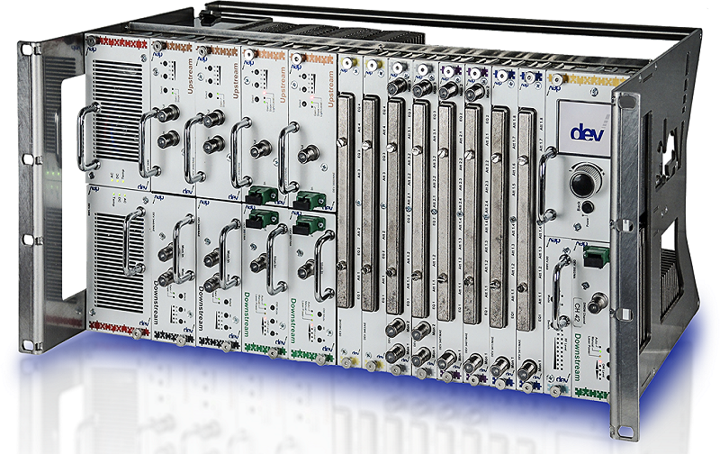 DEV will also show MODULO HFC, the modular headend platform for Hybrid Fiber Coax (HFC) networks. The system can be used for passive signal distribution as well as for active amplification and redundancy applications in cable headends. MODULO also provides optical transmission to and from fiber nodes operating in the DOCSIS 3.1 frequency spectrum. Furthermore, DEV Systemtechnik will showcase its RF-over-Fiber solution Optribution®, as well as other innovative solutions for the transmission and switching of RF signals.The 16² (sixteen squared) fits into a 2 RU chassis and has a high degree of flexibility. The number of input and output channels can be changed, connectors and impedances can be adjusted at any time. In addition to electrical and optical inputs, the 16² Matrix supports variable gain and tilt settings and can be controlled locally, via the DEV Web Interface or SNMP.
