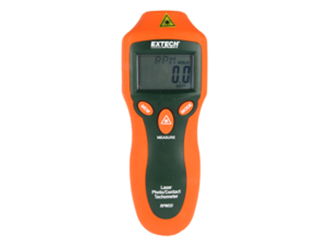 A tachometer facilitates precise RPM measuring. The required value is measured in a contactless manner, and is also based on the laser technology. A tachometer operates similarly to the previously mentioned devices, i.e. a light beam hits a rotating element and partially returns after being reflected off the reflective element. This device counts the number of reflections constituting the basis for RPM value determination.