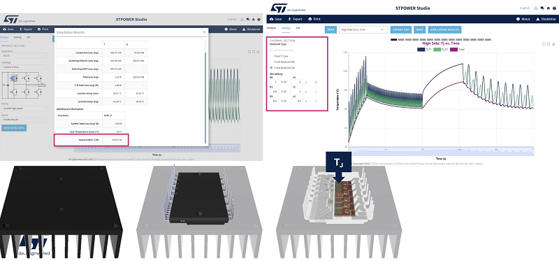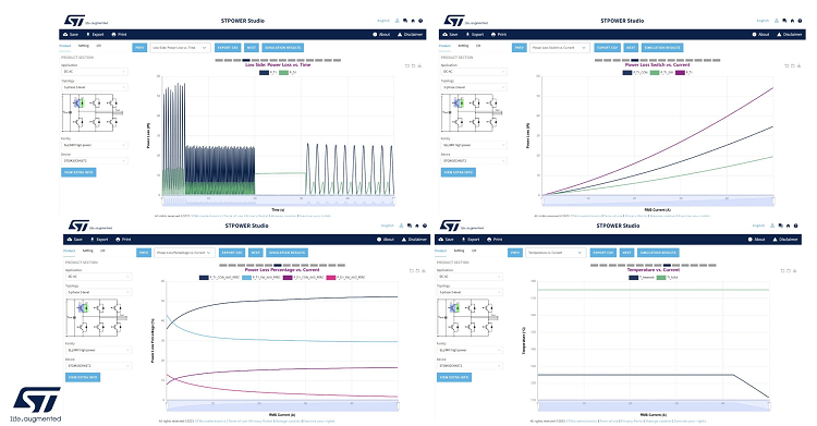 STPOWER Studio, a component of eDesignSuite, specializes in thermo-electrical simulations. As eDesignSuite transitioned to HTML5 to enhance its user interface, STPOWER Studio benefited from the same underlying architecture, enabling more powerful simulations. It stands out in the industry as one of the few simulators capable of adjusting power losses according to the junction temperature at the moment of the simulation, providing a more accurate representation of real-world usage. Some competitors traditionally use a fixed value for the junction temperature, leading to over- or underestimated losses. Thanks to our dynamic junction temperature, users get more accurate results.
