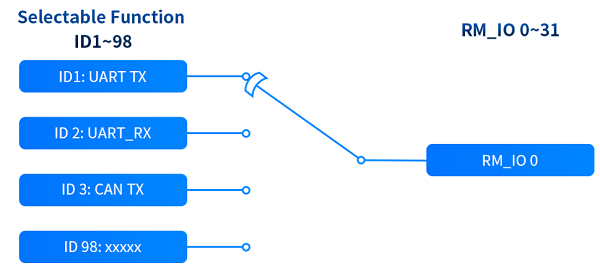 The FET3506J-C SoM uses a compact design, with a size of only 29mm×40mm, which is significantly smaller than conventional SoMs. This breakthrough design comes from Forlinx Embedded’s efficient use of the processor pins. Through the matrix IO design, 98 functional signals can be flexibly mapped on 32 physical pins. Any functional signal, such as UART, CAN-FD, JTAG, FSPI, etc., can be assigned to any pin through software configuration.