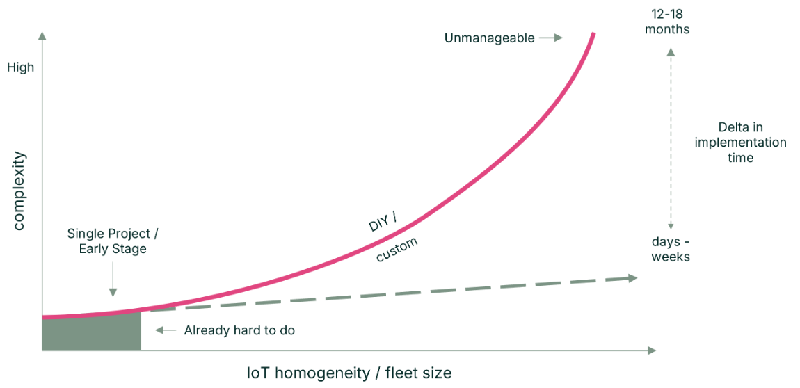 In this highly fragmented market, device manufacturers are used to having to create their own proprietary hardware and software systems. So their first instinct is typically to also create their own cybersecurity solution. As we shall see, this can be an expensive, time-consuming and difficult path to follow. Implementing a common solution that someone else creates, tests, validates and maintains can be a better way.