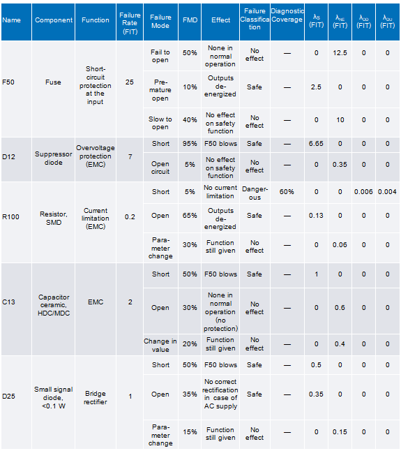 Table 1. FMEDA of a Power Supply Circuit (Based on IEC 60812:2018 Table F.12)