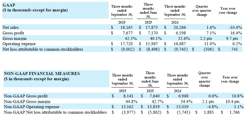- Expects strong fourth quarter net sales of $18.5 – $19.5 million, marking the highest quarterly revenue of 2025