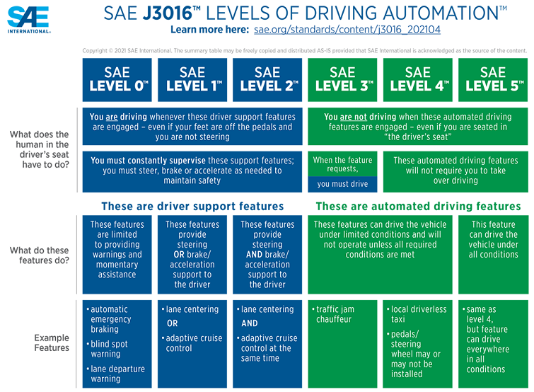 When SDVs centralize software, they’re capable of integrating advanced driver assistance system technologies, that enable increased levels of vehicle autonomy. On today’s roads, using the Society of Automotive Engineers’ Levels of Driving Automation, level 1 or 2 (which requires people to drive even when support features are engaged) is the most prevalent. But what about in the future?