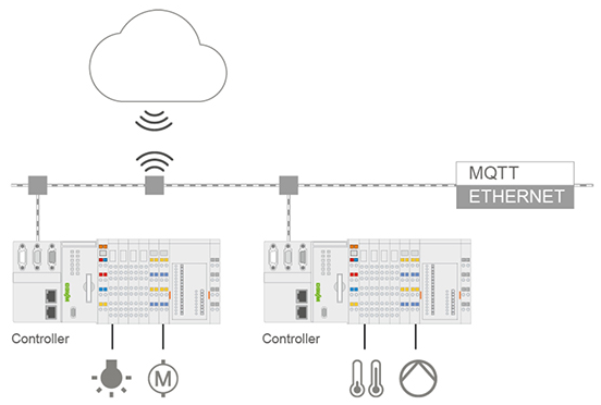 Figure 4: CC100 PLCs can reach the cloud using the MQTT protocol and an Ethernet connection. (Image source: WAGO)