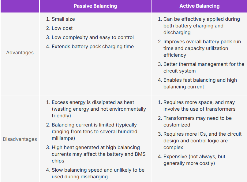 Table 1. Advantages and Disadvantages of Passive and Active Battery Balancing