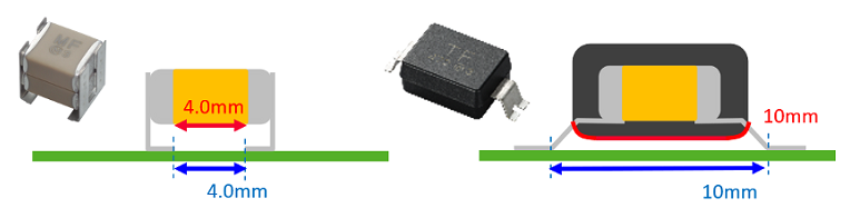 Murata’s Y-class capacitors, such as the DK1 series, are available in a range of package designs tailored to different applications and safety requirements, such as IEC 60384-14, UL 1414, or CQC. These offerings include traditional through-hole devices, SMD MLCCs, and both inside and outside bending resin-molded SMD variants.