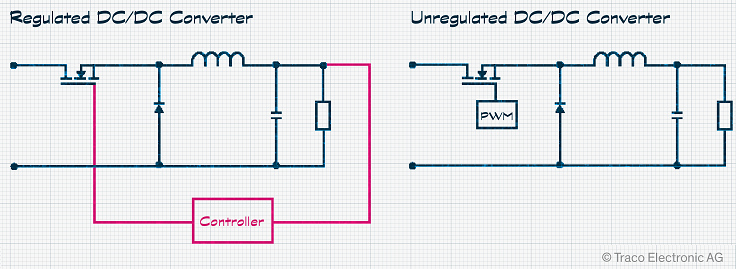 Regulation in DC/DC converters is essentially a matter of control vs simplicity. A regulated converter keeps the voltage constant over vast input and load changes, ensuring precise and predictable performance in sensitive electronic systems.