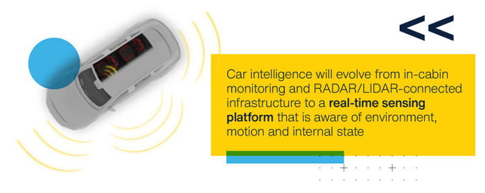 To date, the transition from ‘traditional’ cars to SDV’s has been built on the intersection of two parallel areas of innovation. The first is the growing intelligence inside the car through in-cabin monitoring; the second is the expanding awareness outside the car enabled by radar, lidar, and connected infrastructure.