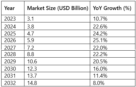 | Year | Market Size (USD Billion) | YoY Growth (%) |