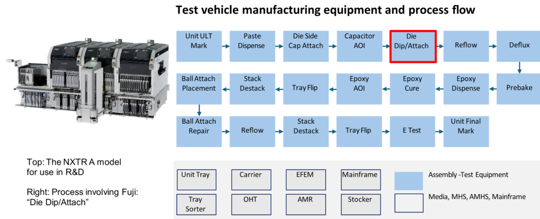 Consequently, our SMT pick and place machine, the NXTR A model, has been selected for use in this R&D project. Through research and development of die placement process and its automation technologies using the NXTR, Fuji will contribute to advancing automation and standardization in semiconductor back-end manufacturing.