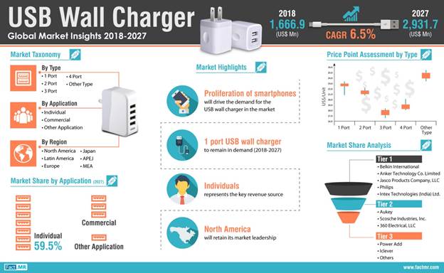 1-Port USB Wall Chargers Accounted for 5 in 10 Units Sold in 2018, Fragmented Landscape Inducing Pricing Pressures